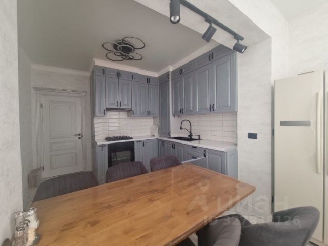 Общая площадь квартиры 72 м2, из них большая комната, гостиная, кухня, гардеробная и ванная