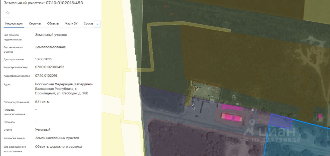 Земельный участок, расположен по адресу: КБР, г. Прохладный, ул. Свободы, д. 280, кадастровый номер 07:10:0102016:453, площадью 531 кв.м.