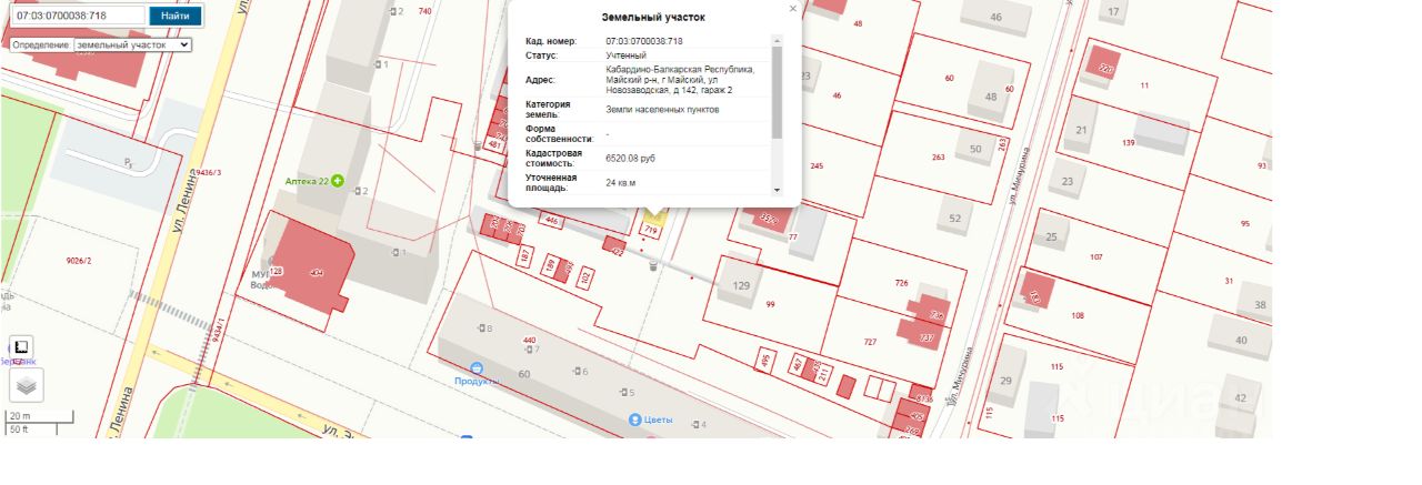земельный участок из земель населенных пунктов с кадастровым номером 07:03:0700038:718, площадью 24,0 кв.м, с видом разрешенного использования "хранение автотранспорта", расположенный по адресу: КБР, г. Майский, ул. Новозаводская 142, гараж 2