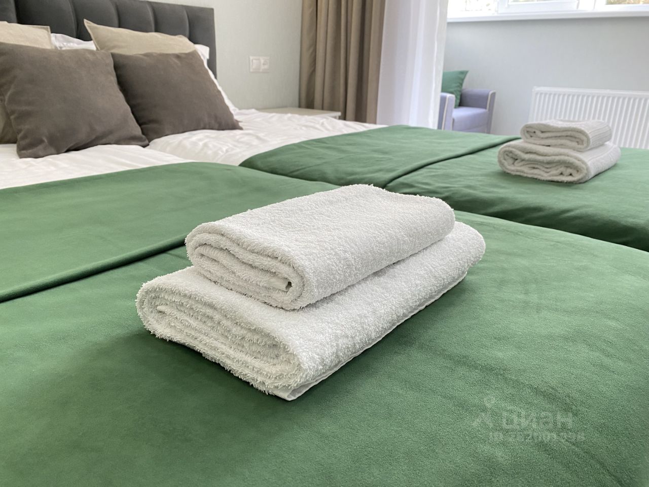 — Две изолированных спальни (в каждой 2 односпальных кровати, которые можно сдвинуть\раздвинуть + 1 раскладное кресло)