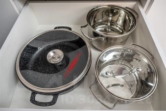 — оборудованная кухня: посуда, холодильник, микроволновка, кастрюли, сковорода, электрический чайник, чай, кофе, сахар;