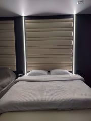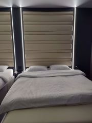 Апартаменты оснащены всем необходимым для полноценного комфортного проживания.Особое внимание уделено спальным местам: двух спальная кровать 160*200; односпальная 90*200. В апартаментах используются профессиональные матрасы "Аскона" 35см толщина , 1000 пружин, двухсторонней жесткости средней/жесткой. Постельное белье настоящий белоснежный турецкий сатин в полоску ("как в пятизвездочном отеле"). При необходимости есть дополнительное полноценное место( 170*190) на кухне, разбирается диван.