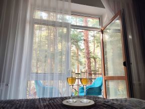 Апартаменты находятся в самом лучшем в Приэльбрусье жилом комплексе "Горная сказка". ЖК расположен в сосновом бору, имеет свою закрытую территорию, въезд через шлагбаум. Внутри городка своя закрытая парковка, в достаточном количестве для всех проживающих. На территории оборудованы зоны отдыха, зоны барбекю,с беседками и мангалами, детские и спортивные площадки . Апартаменты на 3 этаже с восхитительным видом на горный массив.