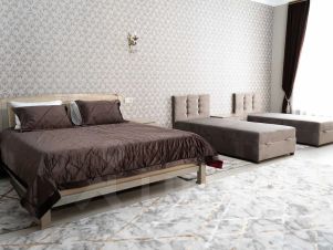 Семейный номер с двуспальной кроватью и двумя раздельными кроватями, которые при желании можно объединить. В номере: тумбочки, шкаф, стол, стулья, телевизор, кондиционер, холодильник, чайник, санузел, фен. Гостям предоставляются полотенца, тапочки, халаты и туалетные принадлежности.