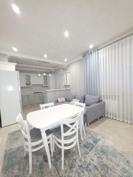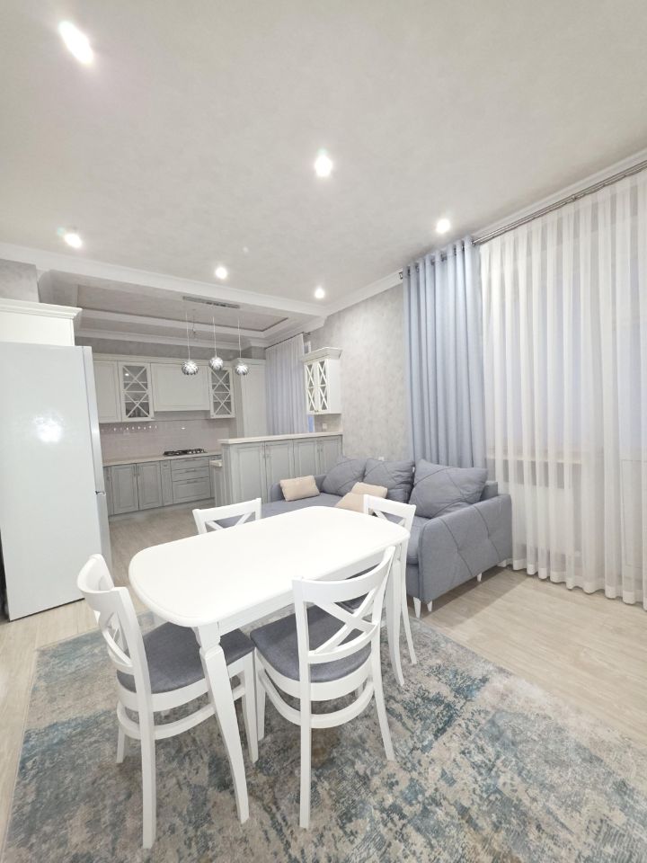 Сдается просторная двухкомнатная квартира площадью 85 кв. м в современном доме 2016 года постройки. Квартира расположена на первом этаже. Высокие потолки в 3 метра создают ощущение простора и света. Жилая площадь составляет 40 кв. м, а кухня порадует вас своими 20 кв. м, где можно проводить уютные вечера в кругу семьи.