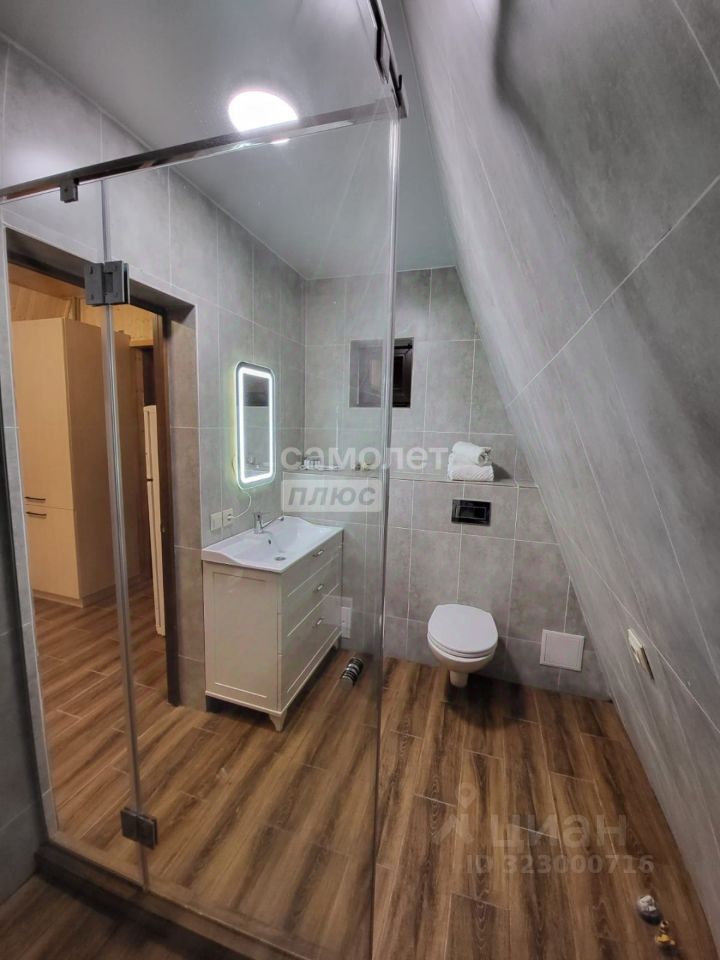 Стильный санузел с душевой кабиной,где есть все гигиенические принадлежности