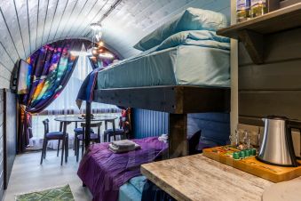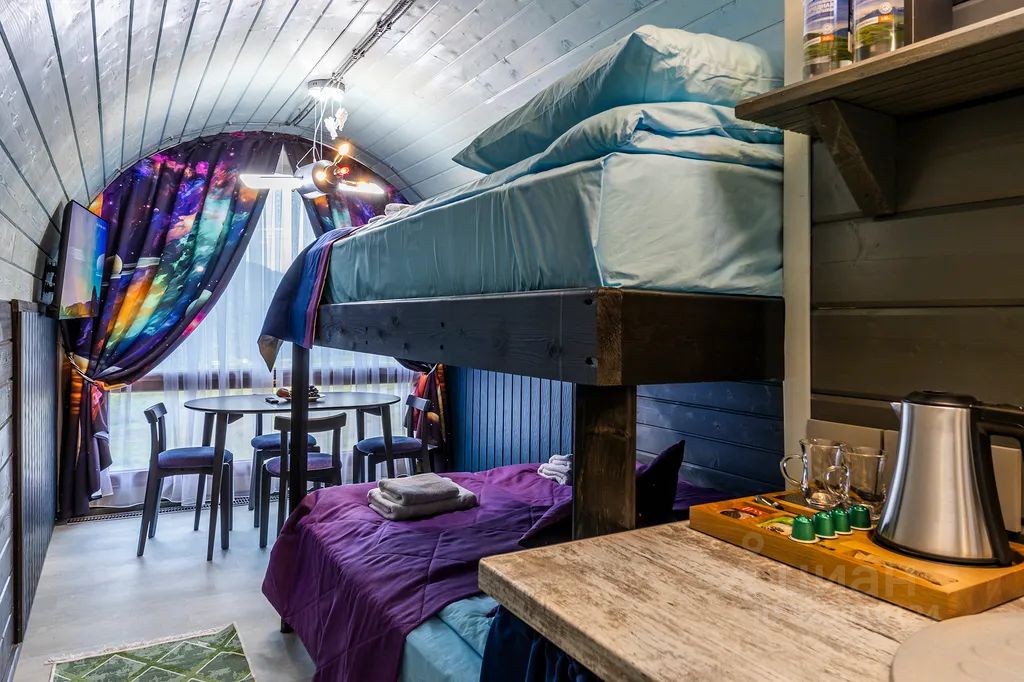 Представляем семейный молодёжный номер, вдохновлённый космосом и духом Байконура — легендарного космодрома. Он рассчитан на 4 человека и выполнен в строгом, но уютном стиле с цветами от голубого до графитового, символизирующими космическое пространство. Декор включает планеты, спутники и силуэты космонавтов, создавая атмосферу настоящего космического пристанища. Интерьер компактный и функциональный, без лишних деталей, подчёркивающий дисциплину и профессионализм космонавтов. Идеален для семей и молодёжных компаний. Для полного погружения рекомендуем дополнить отдых просмотром тематических фильмов о космосе и героях Байконура.
