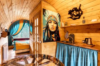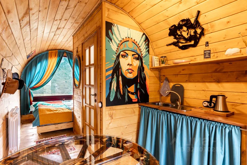 Добро пожаловать в номер в стиле "Дикий Запад"! Двухместный номер создан, чтобы погрузить вас в атмосферу романтики времен ковбоев и индейцев. Панорамное окно открывает вид на гору Ржавая.