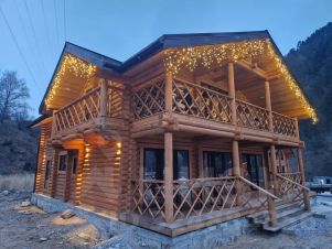 Уважаемые гости Вашему вниманию большой уютный дом с камином на 14 человек в комфорте с видом на гору Чегет, горы, лес и водопад Байдаево.