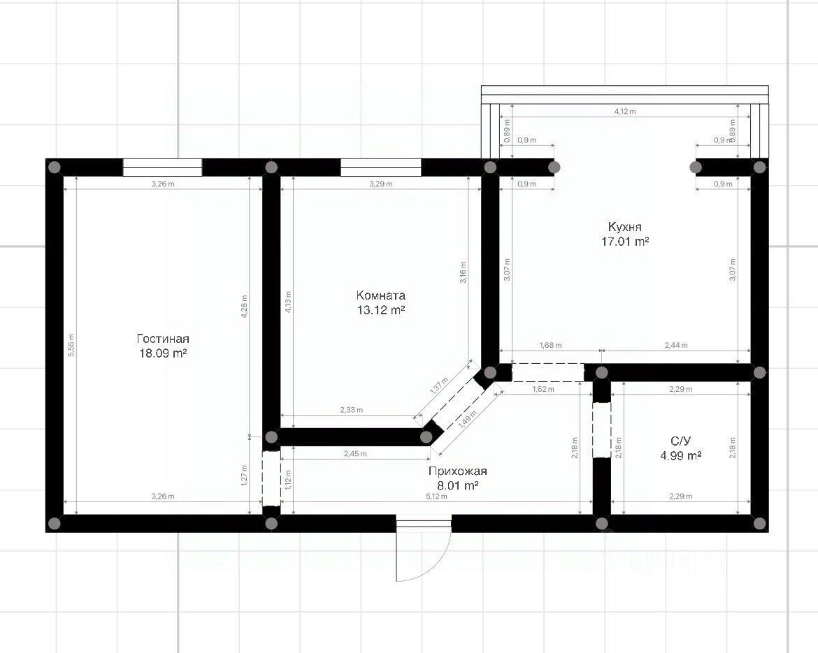 Особого внимания заслуживает просторная кухня площадью 16.2 кв. м с выходом на уютную застекленную лоджию — идеальное место для отдыха.