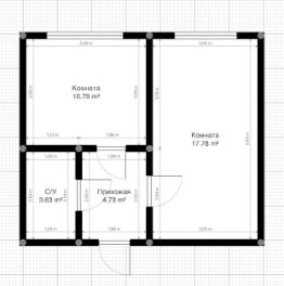 одной комнаты, площадью 18 м2;