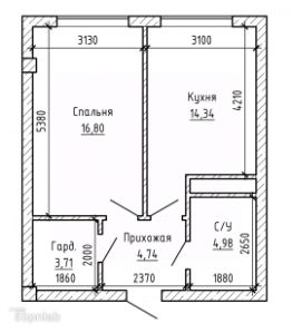 Общая площадь составляет 46,4 квадратных метра.
