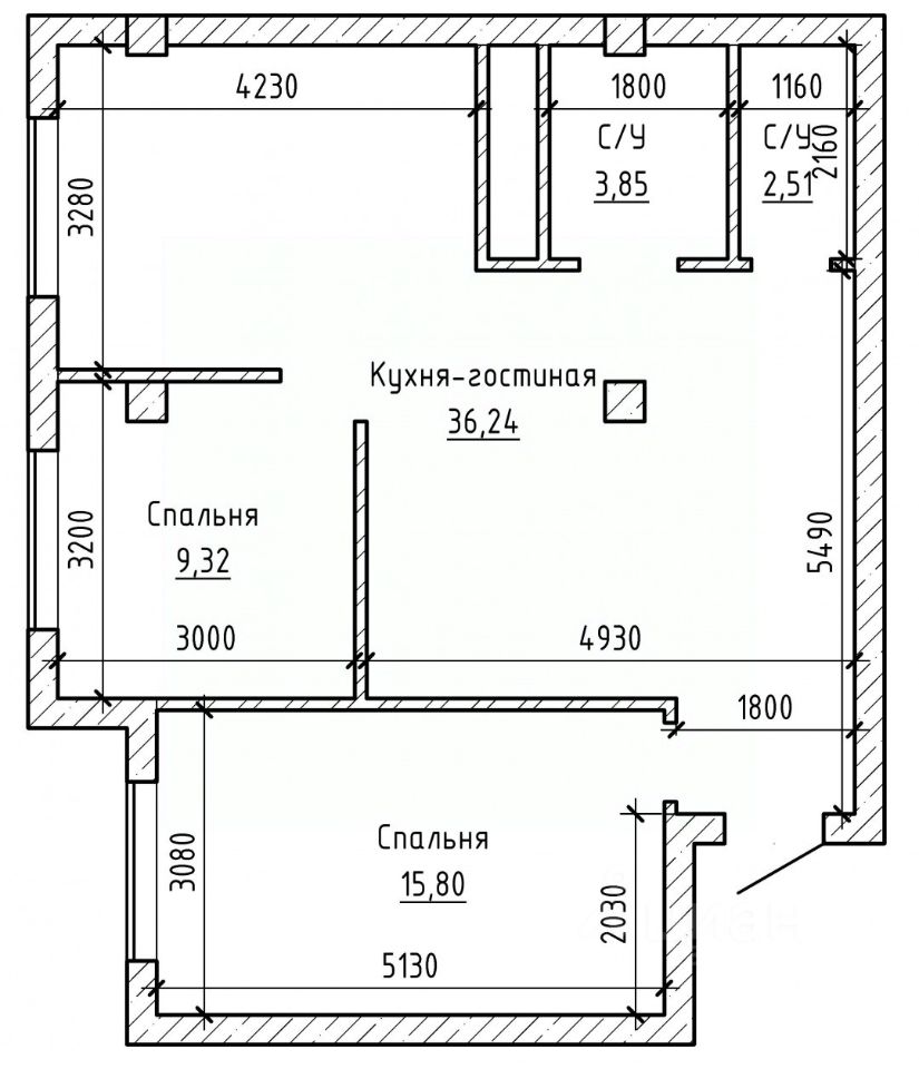 В квартире выполнены черновые работы: штукатурка; стяжка; электрика; также есть теплый пол; качественные окна и входные двери; раздельный санузел; большая кухня-гостиная и две полноценные раздельные комнаты!