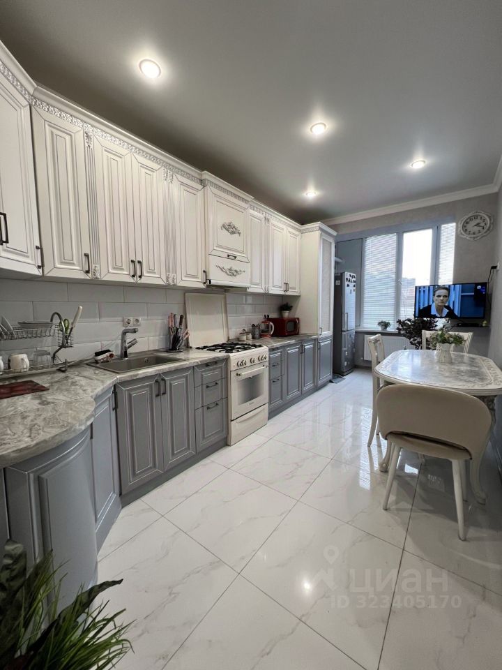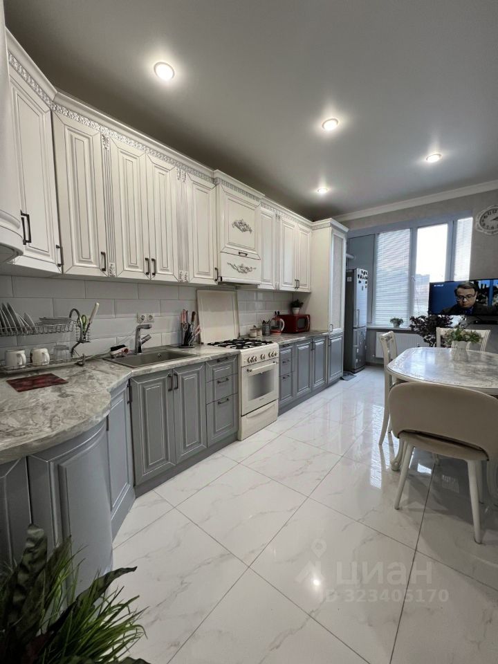 Кухня оснащена встраиваемой мебелью и техникой .