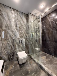 Просторный и стильный санузел.