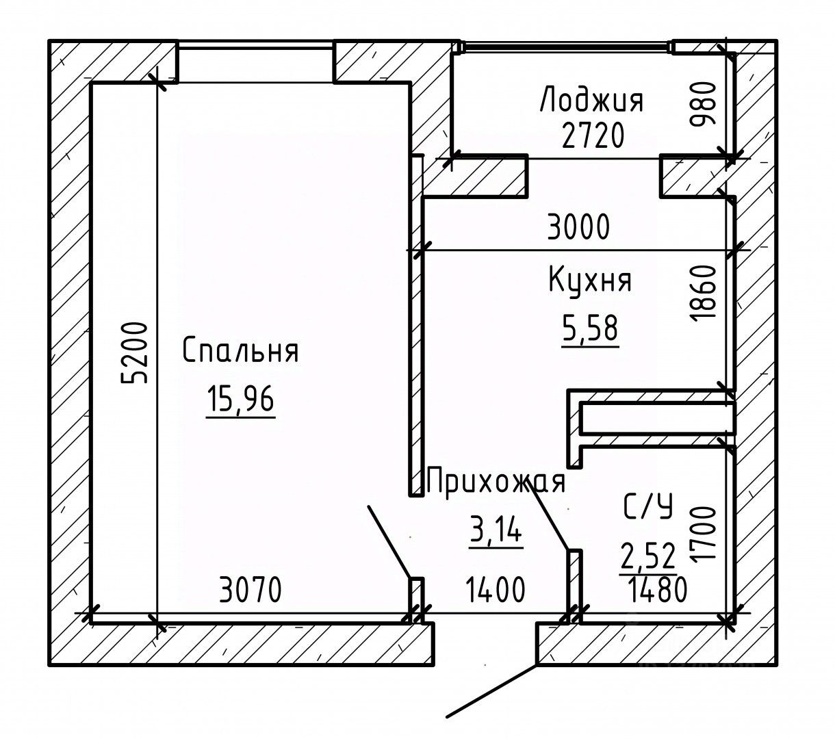Общая площадь квартиры составляет 31м2.