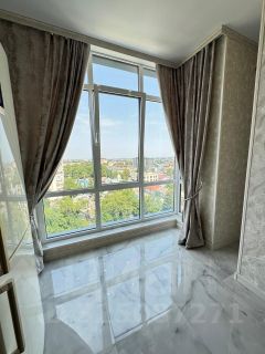 В каждой комнате алюминиевые панорамные окна, с которых открывается потрясающий вид на город - это дополнительный бонус для любителей красивых пейзажей