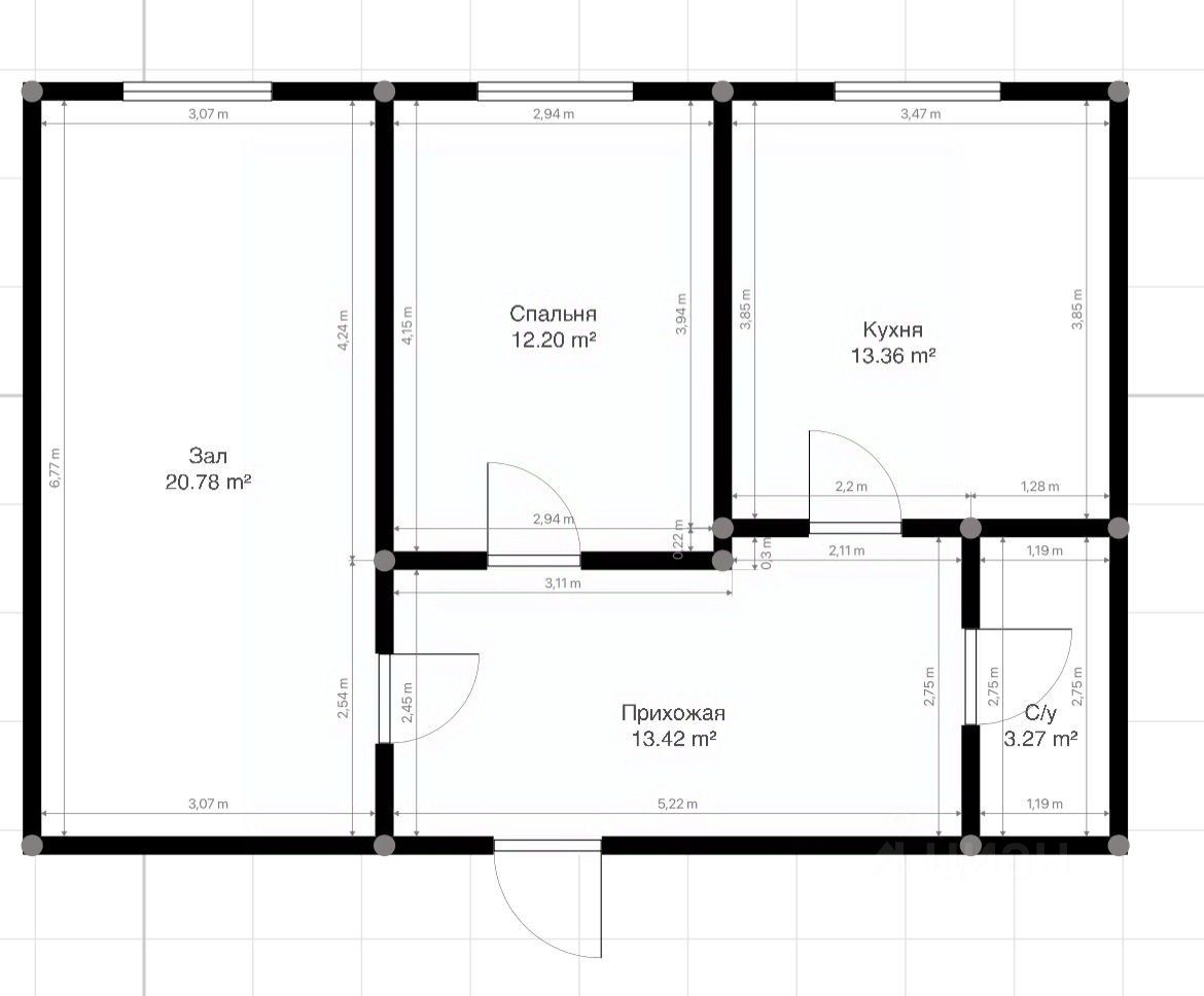 Общая площадь квартиры 64 м2