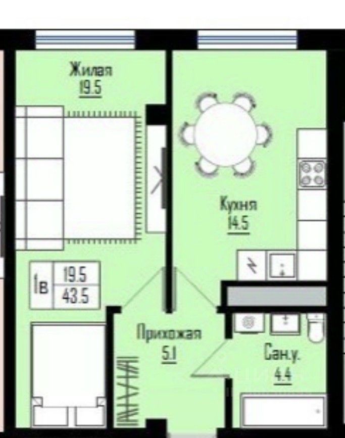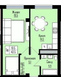 Просторная квартира площадью квартиры 45.3 кв м