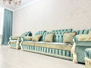 B квартиpе выполнен ремонт из дорогих и качественных материалов, теплые полы , венецианская отделка стен.