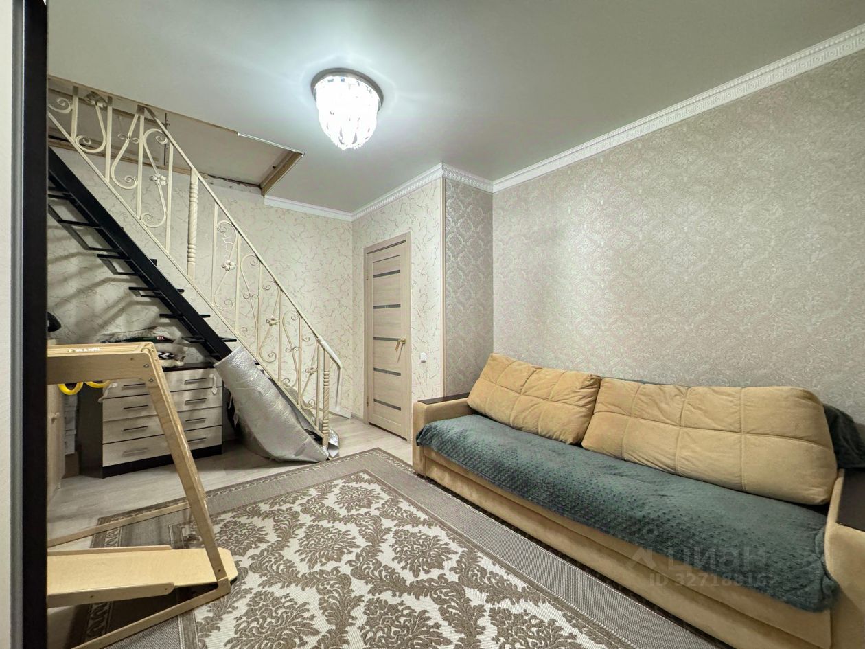 Квартира расположена на двух уровнях: на первом уровне косметический ремонт, комната с выходом на лоджию и кухня с выходом на лоджию. Лоджия остеклена и утеплена. Встроенная кухня. Совмещённый санузел в кафеле, душевая кабина.