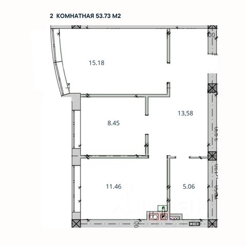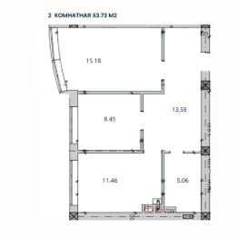 2-комн. квартира, 53,73 м²