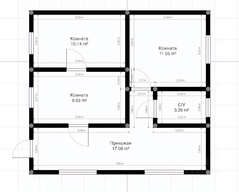 Внутри дом состоит из: