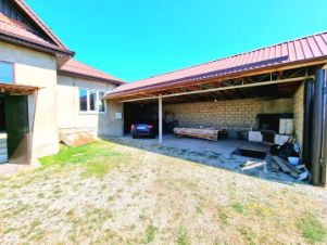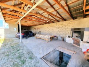 Во дворе установлен навес для автомобиля или мастерской.