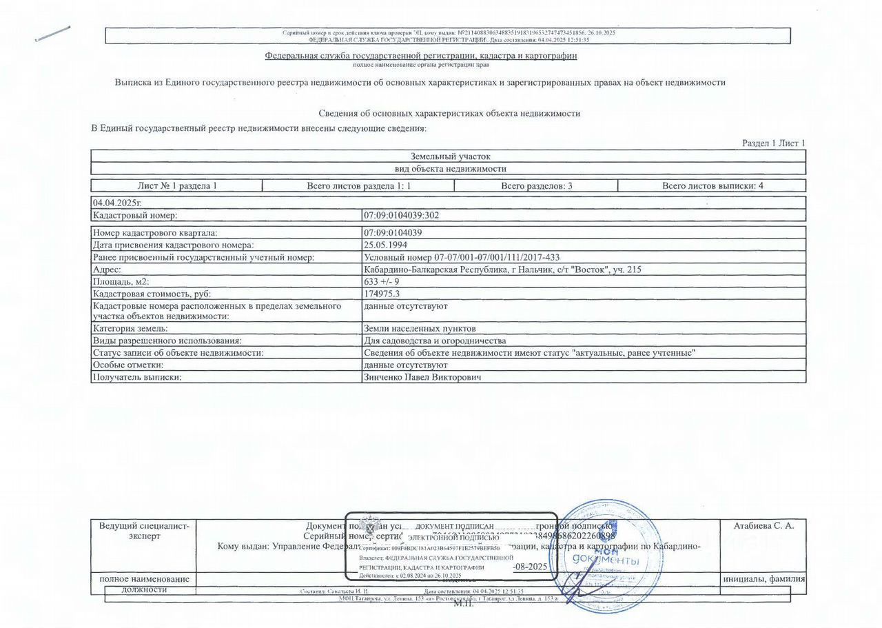 Продается участок 6,33 сотки в очень красивом месте. Кадастровый номер 07:09:0104039:302. На участке коммуникаций нет. Электричество проходит вдоль участка. Вода и газ недалеко. Участок с небольшим уклоном и давно не обрабатывался. Осмотр производится самостоятельно.