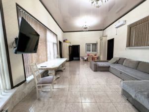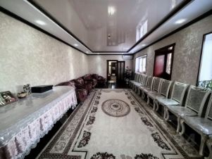 Просторный новый дом с косметическим ремонтом. Большой холл, три комнаты, просторная кухня и 2 санузла позволят проживать тут большой семьёй." Современная, практичная планировка. Дом облицован дагестанским камнем. Два больших навеса. Двор просторный, есть место для нескольких авто.