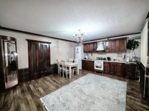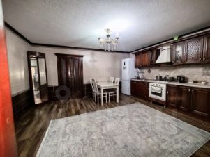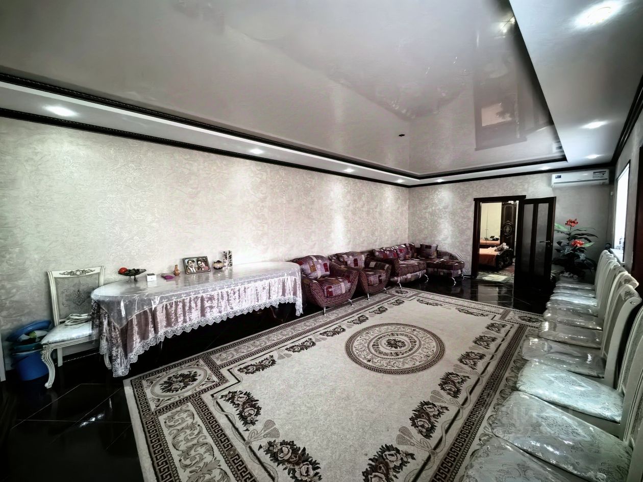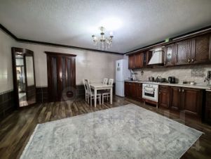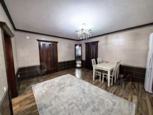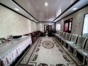 Просторный новый дом с косметическим ремонтом. Большой холл, три комнаты, просторная кухня и 2 санузла позволят проживать тут большой семьёй." Современная, практичная планировка. Дом облицован дагестанским камнем. Два больших навеса. Двор просторный, есть место для нескольких авто.