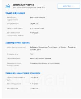 Земельный участок, расположенный по адресу: Кабардино-Балкарская Республика, Баксанский муниципальный район, с.п. Кишпек, ул. Набережная, д. б/н, уч.2, площадью 1066 кв.м., с кадастровым номером 07:01:1300002:189, вид разрешенно...