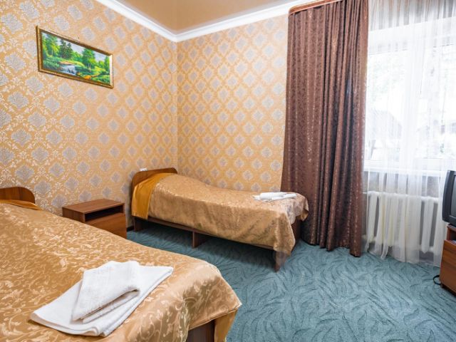 Отель "Эльбрус Плаза" - это домашняя обстановка и уют, современный дизайн номеров, круглосуточно охраняемая парковка, доброжелательный персонал. Номера шикарно меблированы, дизайн сделан со вкусом. Кровать прочная, большая с удобными ортопедическими матрасами, белоснежное белье, махровые халаты. Премиальная французская сантехника в ванной и очень комфортная планировка номеров. Гостиница обеспечивает проживающим следующие виды услуг: услуги службы приёма и размещения в т.ч. бронирование (круглосуточно); предоставление места на охраняемой парковке (круглосуточно); предоставление утюга, электрочайника, швейных принадлежностей; завтрак шведский стол; пользование сейфом; вызов такси (круглосуточно); побудка к определённому времени (круглосуточно); туристская информация; ежедневная и промежуточная уборка номеров; смена постельного белья, халатов 1 раз в 2 дня, полотенец ежедневно; предоставление гигиенических наборов; кабельное телевидение; бильярд; фитнесс зал; во дворе есть беседки с мангалом; трансфер в зимний сезон от отеля до горнолыжных трасс и мест массового гуляния туристов по расписанию; WI-FI - конференц-зал, кофебрэйк. Номер 18м2, со второго этажа имеются балконы, в комнате расположена большая двуспальная кровать с ортопедическим матрасом, также есть номера с двумя односпальными кроватями, две прикроватные тумбочки, телевизор, стол с тумбой, два стула, мини-холодильник, чайник, обогреватель, в прихожей шкаф с зеркалом, сейф, в санузле душевая кабинка, унитаз, раковина, зеркало с подсветкой, змеевик, фен.