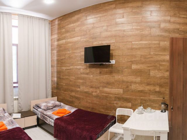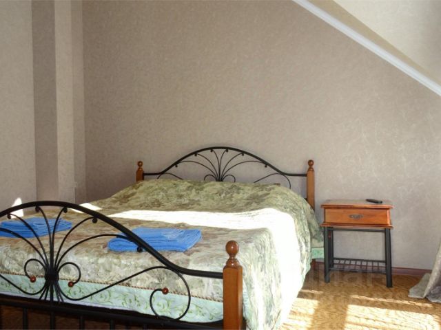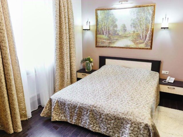 В номере: одна кровать 180на200см или две односпальные кровати + раскладная еврокровать, стулья, шкаф, прикроватные тумбочки, письменный стол, пуфик, сейф, кондиционер, центральное отопление, телефон, зеркало, светильник, набор полотенец, набор постельного белья, индивидуальные светильники, теплое одеяло из "лебяжьего" пуха, электронный замок с магнитным ключом, щетка для одежды/обуви, подставка под чемодан, электрочайник, холодильник, чай, чайный набор, Wi-Fi.