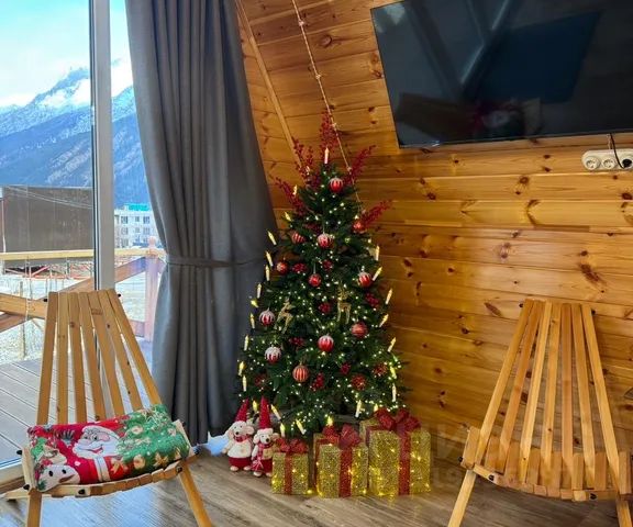 Дом в этническом стиле оснащен односпальными кроватями, есть удобные диваны и кресла. В спальной комнате установлен стильный камин и домашний кинотеатр-проектор. В ней 5 спальных мест, можно установить дополнительные кровати. Санузел, кухня-столовая и прихожая в доме отдельные. Для приготовления еды имеется отдельная кухня, гарнитур в ней оснащен плитой, холодильником, чайником. Есть возможность пользоваться стиральной машиной, кухонными принадлежностями, посудой и столовыми приборами, отдельной зоной барбекю.