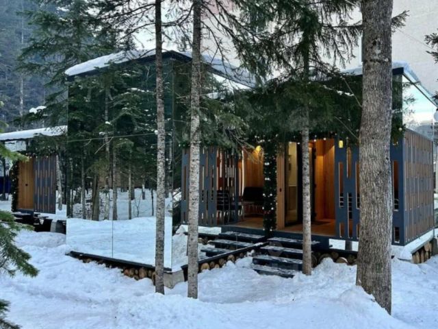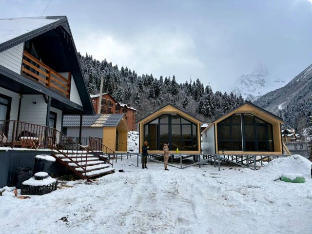 Характеристики коттеджа: Очень комфортабельные коттеджи в стиле A-Frame на трёх уровнях, для комфортного проживания 6 человек (8 мест с диваном) в Приэльбрусье, построенные по эксклюзивному проекту. Первый этаж студия включающий в себя кухню, санузел с душевой кабиной, гостиную, кухонная зона с диваном на фото. Второй этаж имеет две отдельные спальни с панорамным видом на горы и Баксанское ущелье по 12 кв. каждая, в каждой спальне большая двуспальная кровать. 3-й этаж комната-кровать с остеклением в обе стороны в уникальном стиле из 16-ти кв.м. с панорамным видом на горы. 2 спальных места. Коттедж находится в посёлке, огороженная территория. Что мы предлагаем Вам: В доме имеется всё для вашего комфорта, холодильник, телевизор, WiFi, варочная панель, микроволновая печь, электрочайник, большой ТЕЛЕВИЗОР, КАРАОКЕ, ножи, вилки, ложки и т.д. На территории есть отличная сауна с бассейном (в стоимость проживания не входит) Парковка бесплатная. Мангал: Зона барбекю для жарки шашлыков крытая с отоплением, 2 стола на 12-16 человек, общая для всех гостей комплекса. Мы предоставляем вам сетки и шампур для жарки мяса, угли вы привозите сами (всё есть в шаговой доступности) Расчётное время заезда и выезда Заезд в 14:00 - Выезд 12:00. По московскому времени.