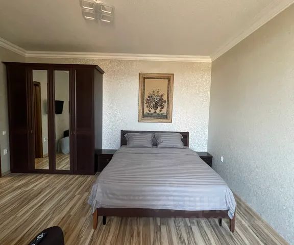 Сдается 1-комнатная квартира посуточно в новом доме. Площадь 45 кв. м. Этаж 3. Дом без лифта. Окна выходят на улицу Биттирова, на телевышку, вид потрясающий. Имеется парковка для жильцов дома, благоустроенний закрытый двор. Внутри квартиры есть всё необходимое для комфортного проживания: 2-спальная кровать, раскладной диван на 2-х, шифоньер с зеркалом, прикроватные тумбочки, телевизор. На кухне — холодильник, электрочайник, газовая плита, кухонный гарнитур, набор посуды. Ванная комната отделана кафельной плиткой, имеется стиральная машина-автомат. Также для вашего комфорта имеется гладильная доска, утюг, раскладная сушилка, фен.