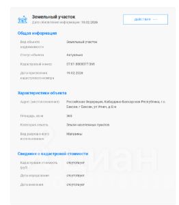 Данные получены с сайта ГИС Торги. Земельный участок с кадастровым номером 07:01:0800077:369 площадь 365 по адресу Российская Федерация, Кабардино-Балкарская Республика, г.о. Баксан, г Баксан, ул Угнич, д.б/н