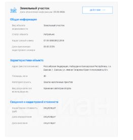 Данные получены с сайта ГИС Торги. Земельный участок с кадастровым номером 07:01:0800052:2014 площадь 40 по адресу Российская Федерация, Кабардино-Балкарская Республика, г.о. Баксан, г. Баксан, ул. имени Гагарина Юрия Алексеевича, б/н