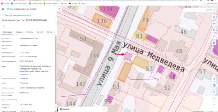 земельный участок из земель населенных пунктов с кадастровым номером 07:03:1700000:489, площадью 393,0 кв.м, с видом разрешенного использования "предпринимательство", расположенный по адресу: Кабардино-Балкарская Республика, г....