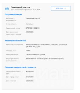 земельный участок из земель населенных пунктов с кадастровым номером 07:03:0000000:3717, площадью 1000,0 кв.м, с видом разрешенного использования "ритуальная деятельность", расположенный по адресу: Кабардино-Балкарская Республик...