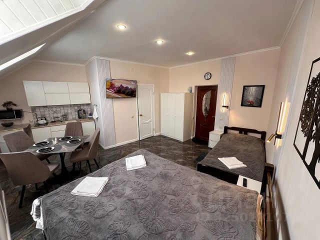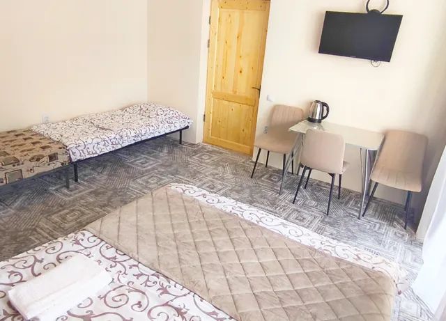 Отель "Эльбрус Плаза" - это домашняя обстановка и уют, современный дизайн номеров, круглосуточно охраняемая парковка, доброжелательный персонал. Номера шикарно меблированы, дизайн сделан со вкусом. Кровать прочная, большая с удобными ортопедическими матрасами, белоснежное белье, махровые халаты. Премиальная французская сантехника в ванной и очень комфортная планировка номеров. Гостиница обеспечивает проживающим следующие виды услуг: услуги службы приёма и размещения в т.ч. бронирование (круглосуточно); предоставление места на охраняемой парковке (круглосуточно); предоставление утюга, электрочайника, швейных принадлежностей; завтрак шведский стол; пользование сейфом; вызов такси (круглосуточно); побудка к определённому времени (круглосуточно); туристская информация; ежедневная и промежуточная уборка номеров; смена постельного белья, халатов 1 раз в 2 дня, полотенец ежедневно; предоставление гигиенических наборов; кабельное телевидение; бильярд; фитнесс зал; во дворе есть беседки с мангалом; трансфер в зимний сезон от отеля до горнолыжных трасс и мест массового гуляния туристов по расписанию; WI-FI - конференц-зал, кофебрэйк. Номер 35м2, две комнаты, одна спальная с панорамными окнами и балконом, в комнате расположена большая двуспальная кровать с ортопедическим матрасом, две прикроватные тумбочки, телевизор, стол с тумбой, два стула, мини-холодильник, чайник, обогреватель, в другой комнате панорамное окно, раскладной диван-малютка, кресло качалка, в прихожей шкаф с зеркалом, сейф, в санузле душевая кабинка, унитаз, раковина, зеркало с подсветкой, змеевик, фен.